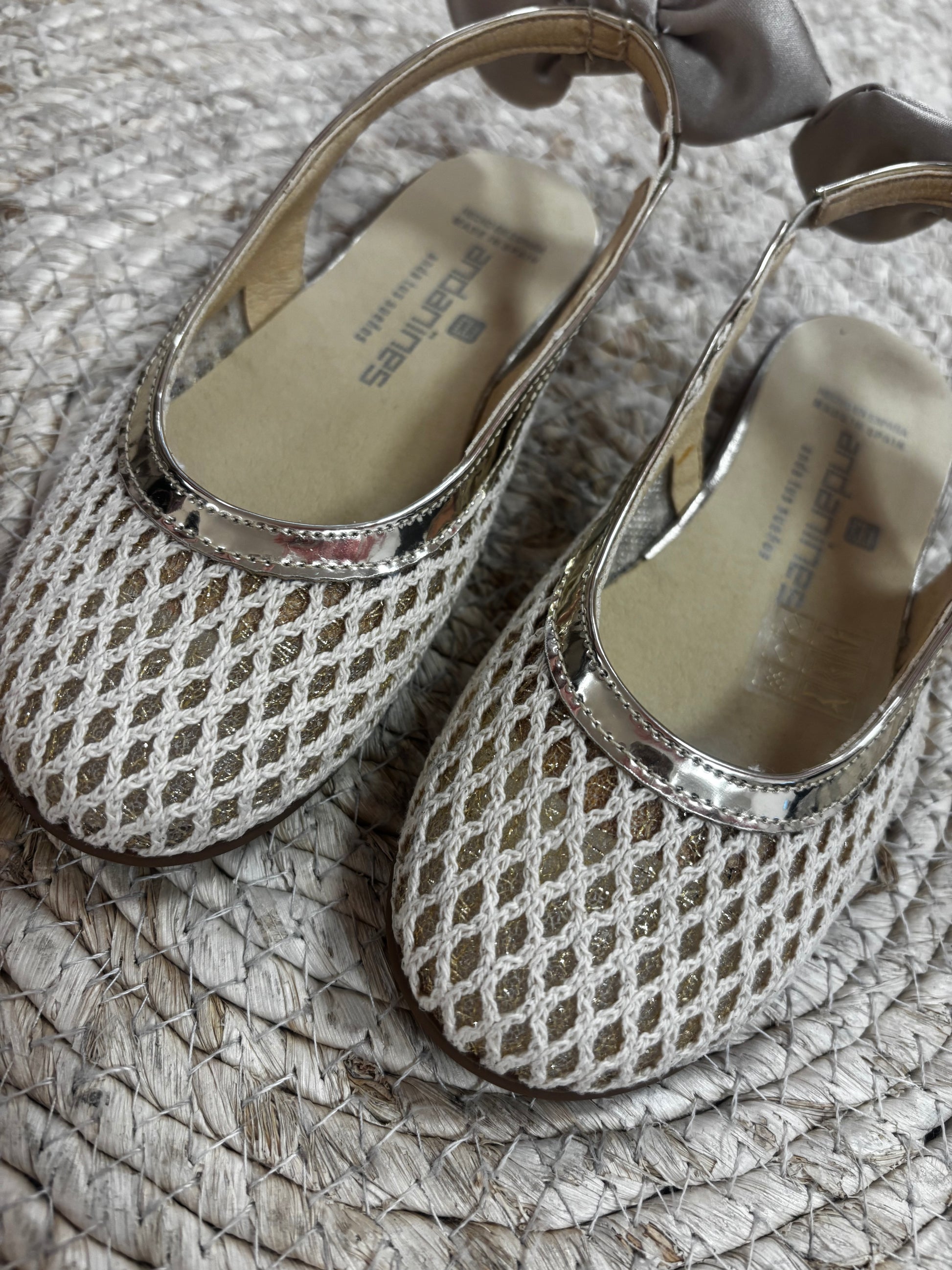 De voorkant is afgewerkt met een bijzondere structuur, wat de ballerina’s een luxe en unieke uitstraling geeft. Perfect voor feestelijke gelegenheden, maar ook prachtig te combineren met een zomerse outfit.