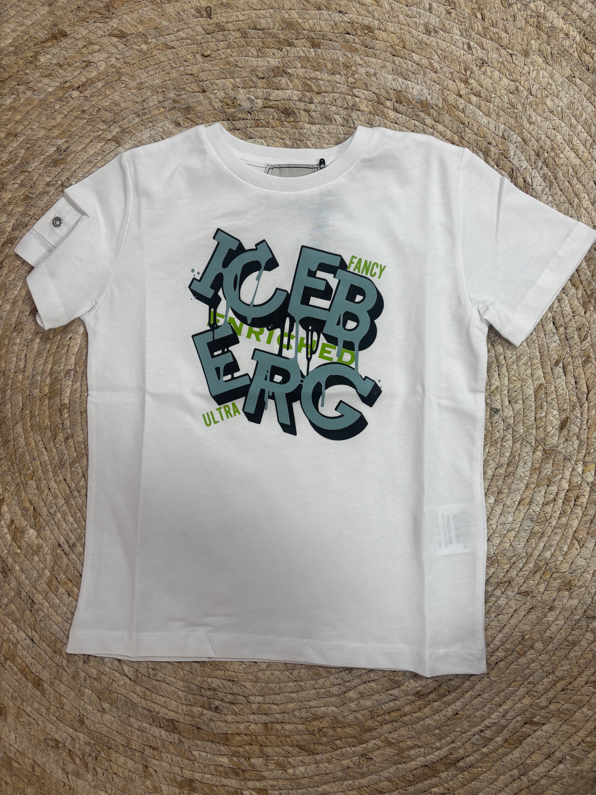 Dit witte t-shirt met de opvallende tekst Iceberg in een prachtige jadegroene kleur is een superstoere keuze voor jongens die willen opvallen.